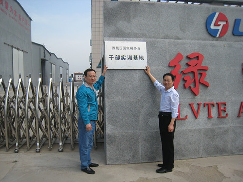| 5月13日上午,潍坊市潍城区国税局领导同志一行到访绿特集团,并举行了干部实训基地签约暨授牌仪式。绿特集团董事长王泽富,绿特财务中心负责人林产家参加了会议。 会上,税企双方围绕如何做好干部实训基地进行了座谈交流。潍城区税务局领导介绍了当前潍坊国税的税收收入形势和干部队伍现状,对绿特集团多年来对税收工作的支持表示感谢,同时指出,建立国税干部实训基地,派遣新录用公务员到企业实习,主要是学习企业先进的管理理念和管理方式,了解企业生产经营管理流程、财务会计相关制度和具体操作、企业文化建设情况等,为下一步做好税收工作打下良好的基础。同时,建立税企沟通平台,收集企业在税收政策、纳税服务、税源管理方面的建议和诉求,以改进工作,为企业服好务、当好参谋。 座谈中,董事长王泽富对国税部门近年来采取的纳税服务举措和税收政策支持表示感谢,表示要充分利用基地这一平台,加强税企沟通与合作,促进征纳双方发展共赢。 座谈交流后,潍城区税务局领导与绿特集团董事长签定了合作协议书并进行了授牌,挂牌仪式.