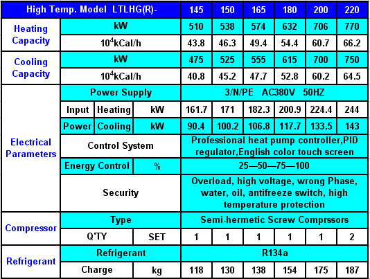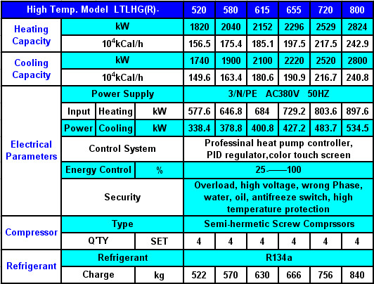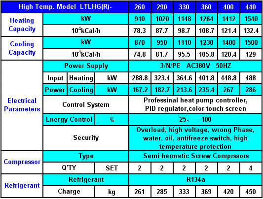 Water to Water Heat Pump (With R134a, Screw Compressors) -Water Source(Water to Water) Heat Pump(WSHP) -Ground Source Heat Pump(GSHP) -Geothermal Heat Pump(GHP) Model Details: MODELS: LTLHG(R)-55---LTLHG(R)-800 R134A with Screw Compressors Heating Capacity: 198-2848KW; Cooling Capacity: 185-2800KW Model Details: R134a Models: LT LH G (R) --- 80 LT: LVTE Company Products Code/LH: Screw Compressor/G: R134a-High Temperature Output Type/R: Heat Pump (Cooling&Heating)/80: Normal Cooling Capacity (USRT)