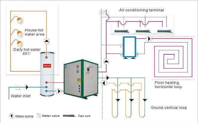 Geothermal Ground Source Heat Pump Water Source Heat Pump Water to Water Heat Pump Heating Only Heating+Cooling+Hot Water