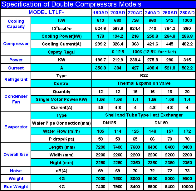 Double Screw Compressors Air Cooled Chiller Models: LTLS60AD-LTLS280AD Cooling Capacity: 174-1000KW